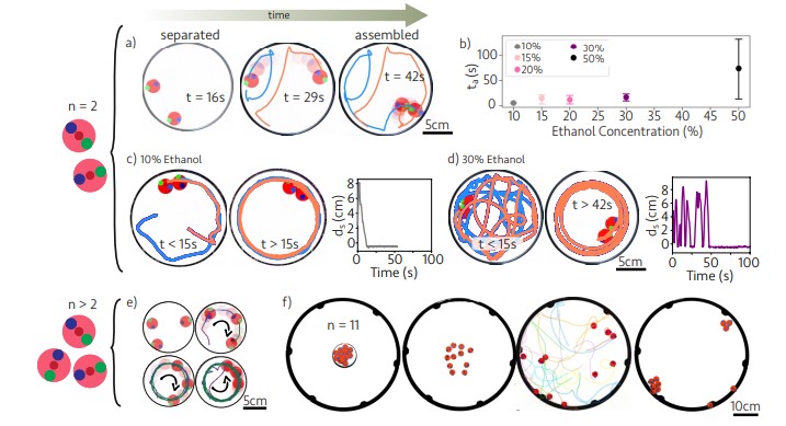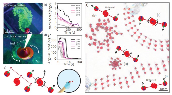 实验表明,酒精浓度越高,粒子的运动速度越快,速度可达每秒 6 厘米。研究人员还发现,粒子在耗尽燃料之前最多可以移动 500 秒。研究人员还测试了较大的粒子,多个粒子之间的相互作用产生了“Cheerio 效应”,即单个粒子相互吸引并一起移动——就像牛奶中的谷物团块一样。