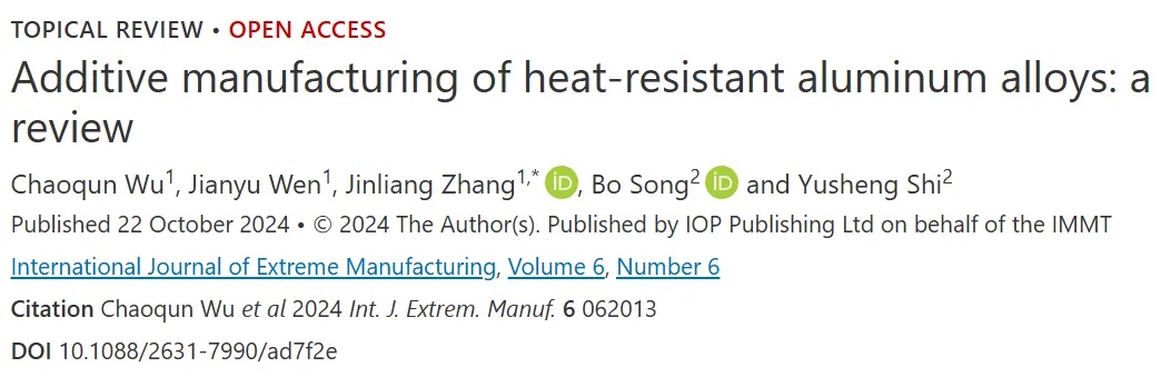 近期,武汉理工大学吴超群教授、文鉴宇硕士生、张金良教授(通讯作者),与华中科技大学宋波教授、史玉升教授在SCI期刊《极端制造》(International Journal of Extreme Manufacturing, IJEM)上共同发表了题为《耐热铝合金增材制造研究进展》的综述论文。该论文重点介绍了提升增材制造耐热铝合金打印性能的设计策略,并对比介绍了现有不同铝合金体系的可打印性、微观组织、高温力学性能和强化机理。最终从合金设计、工艺创新和性能评估三个方面对该领域进行了展望,为耐热铝合金增材制造的发展提供了新的见解。