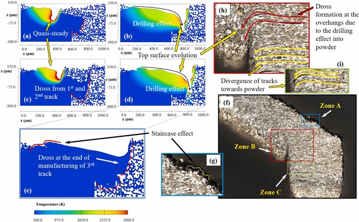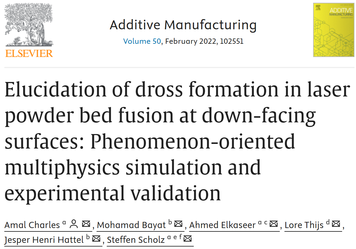 Bayat在其论文“阐明激光粉末床熔合过程中朝下表面的熔渣形成情况:面向现象的多物理场模拟和实验验证/ Elucidation of drossformation in laser powder bed fusion at down-facing surfaces:Phenomenon-oriented multiphysics simulation and experimental validation”中探讨了熔渣形成的原因以及模拟和实验结果之间的相关性。