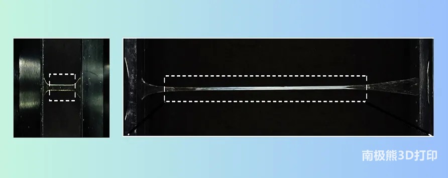 这种弹性创可贴状材料的制作得益于研究团队开发的一种特殊 3D 打印工艺,此工艺称为 CLEAR(通过氧化还原引发辅助的光照后连续固化),本质上可以控制打印过程中材料分子的交联。这是通过结合使用“明暗聚合”来实现的。研究人员表示,这种新颖的3D打印方法在室温下即可实现高单体转化率,无需额外的刺激,例如打印后的光线或热量,并且能够通过增材制造生产高度纠缠的水凝胶和弹性体,与传统的 DLP 相比,其延伸能量高出四到七倍。