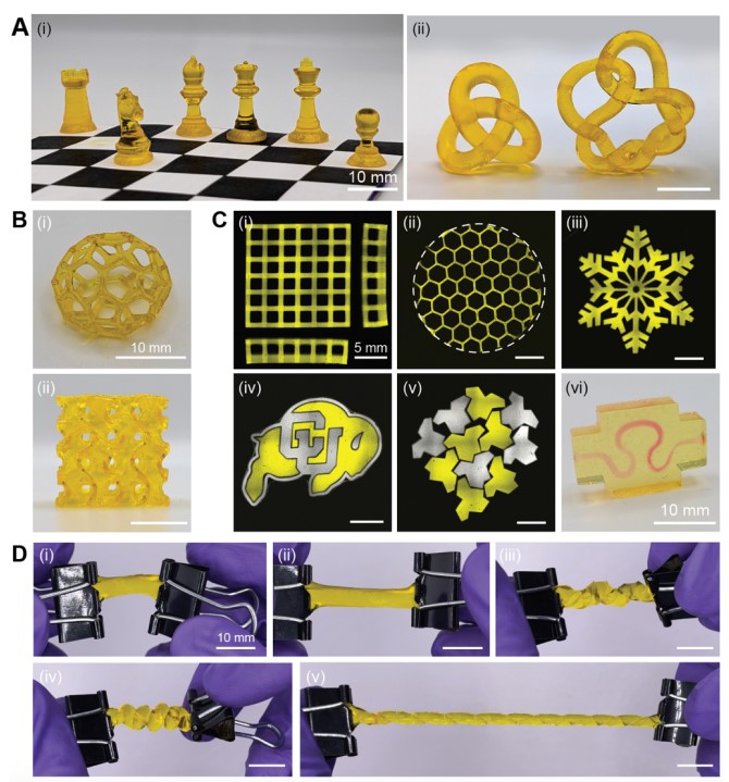该树脂系统不仅表现出良好的环境稳定性,而且其合成过程也考虑到了绿色化学原则,采用更安全、毒性较低的试剂和溶剂。这种新材料使得3D打印件可以在光照下发生可逆的聚合反应,为未来的回收再利用提供了可能性,并且减少了对环境的影响。此外,技术还展示了优异的打印精度和机械性能,有望推动3D打印行业的进一步发展。