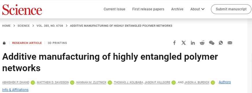 盘点2024年十篇发表于Science和Nature上的3D打印研究,引领3D打印技术飞跃