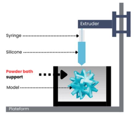 ●生产灵活性:各种动态模具成分:无机或有机、天然或合成、可回收、耐用、惰性或活性/打印环境的适应/打印过程中更换粉末/打印过程中使用不同的硅胶/快速生产速度高达 100 毫米/秒