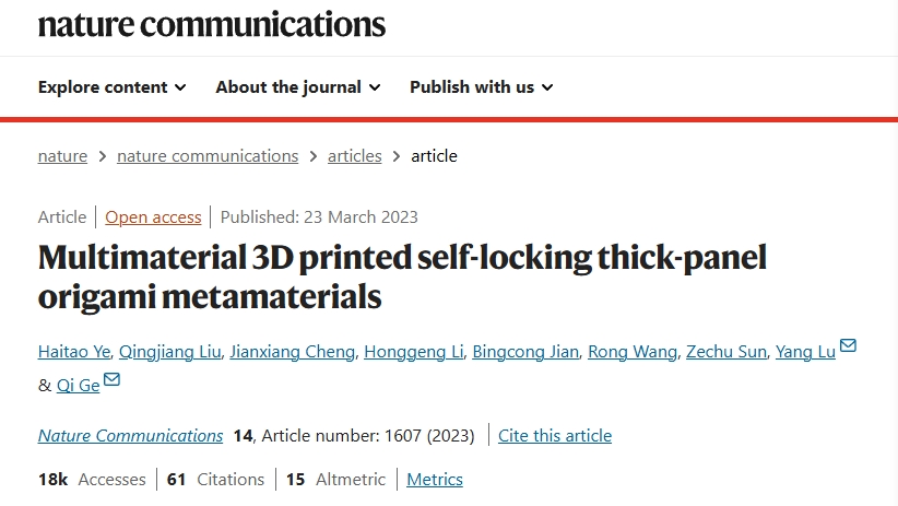 南方科技大与香港城市大学采用多材料3D打印技术实现高性能厚板折纸结构