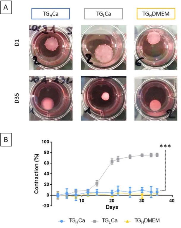 (3)细胞-基质相互作用的详细分析:研究详细分析了细胞-基质相互作用,包括水凝胶收缩和细胞外基质蛋白(如纤维连接蛋白和胶原蛋白I)的分泌,揭示了细胞如何主动影响其微环境。
