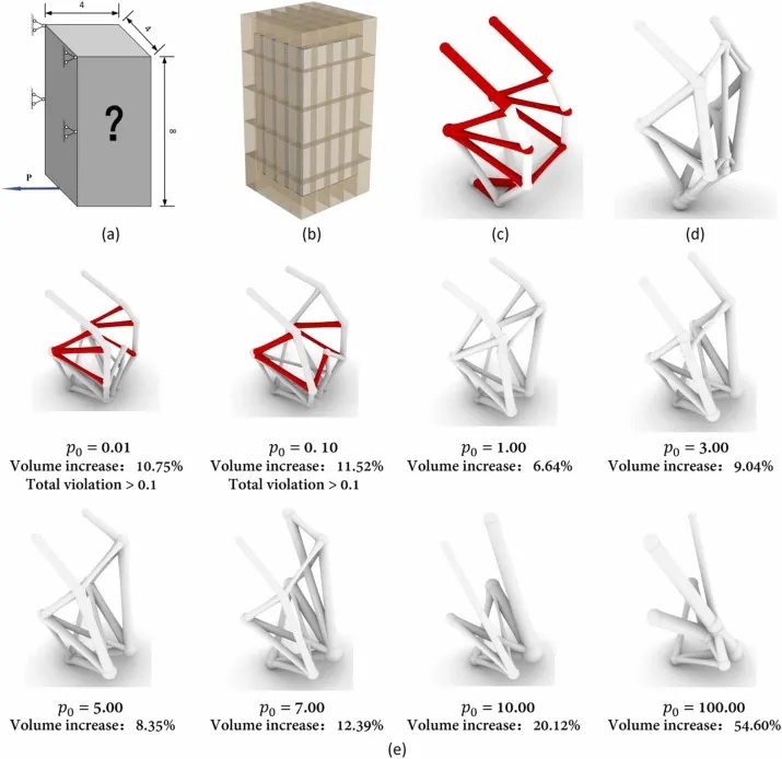 (2)分区间距的选择直接影响优化结果。当分区边界与节点紧密对齐时,在提出的迭代过程中能够获得相对较低材料消耗的结果。