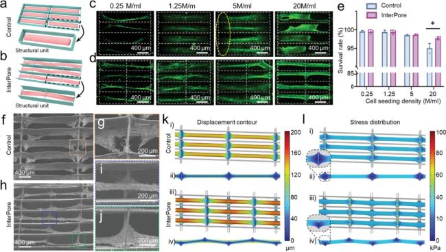 图2 “InterPore”连通的纵向多孔结构促进细胞定向连续排列