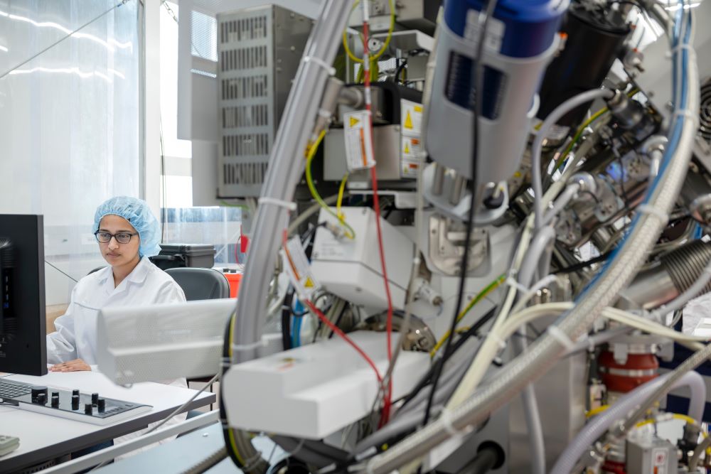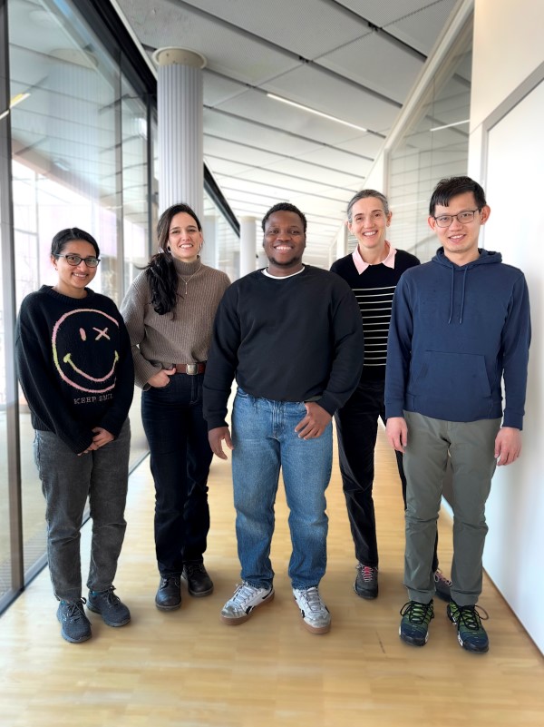 △研究团队来自 ISTA 实验室。从左到右:能源科学联合教授兼沃纳西门子热电实验室负责人 Maria Ibáñez、Abayomi Lawal、第一作者 Shengduo Xu 和 Sharona Horta。© ISTA