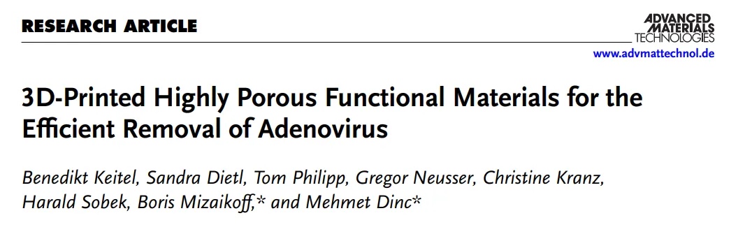 3D打印多孔材料,高达98%的腺病毒去除效率