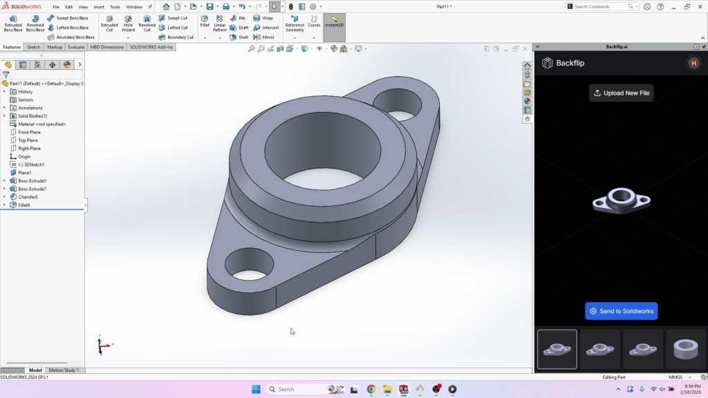 Backflip的SOLIDWORKS插件能够将3D扫描数据直接转换为具有完整特征历史记录的原生 SOLIDWORKS文件,而网络应用程序则将扫描数据转换为可以轻松进行修改的参数化CAD模型。这一过程摒弃了传统上耗时的手动测量和重新创建零件的过程,显著减少了因设备故障导致的生产线停工时间。尽管市场上已存在像Geomagic这样的3D扫描修复软件,并且还有如Comb这类针对骨科领域的简化3D扫描解决方案, Backflip的AI解决方案是专门为满足广泛工业应用需求而设计的。