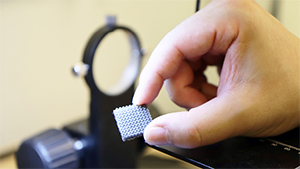 △普渡大学增材和智能制造实验室使用 Huachao Mao 的 3D 打印创新技术打印出一个小型、复杂的光学镜头。照片来源:普渡大学/John O'Malley。
