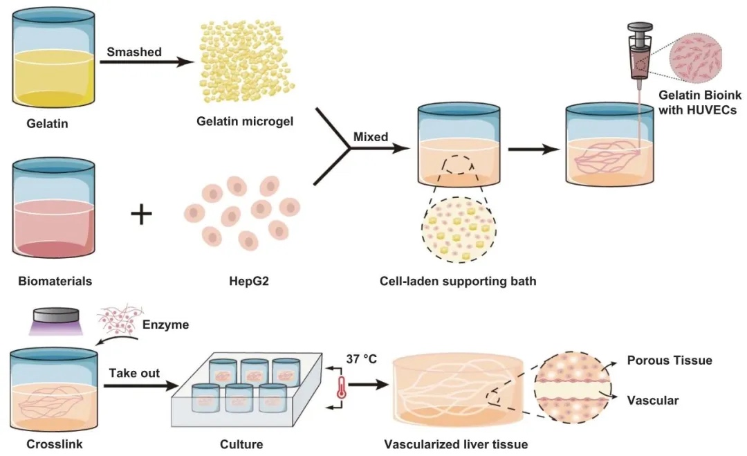 双相载细胞介质赋能3D打印:构建体外复杂血管化肝脏组织新突破