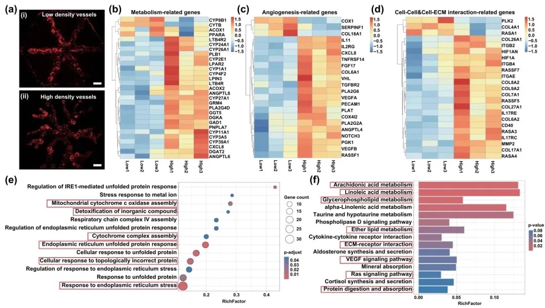通过对不同血管密度的肝组织进行转录组测序,研究了血管密度对肝组织功能的影响,结果表明高血管密度的肝组织在代谢和血管生成相关基因表达方面显著上调。