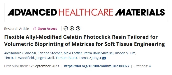德国维尔茨堡大学:凝胶 AGE 树脂助力体积生物打印软组织工程发展