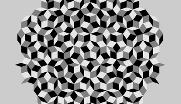 彭罗斯平铺图案很好地说明了准晶体的行为。它使用了一些简单的几何形状,但将它们组合在一起却形成了一种复杂的设计,即使规模很大,也不会重复。