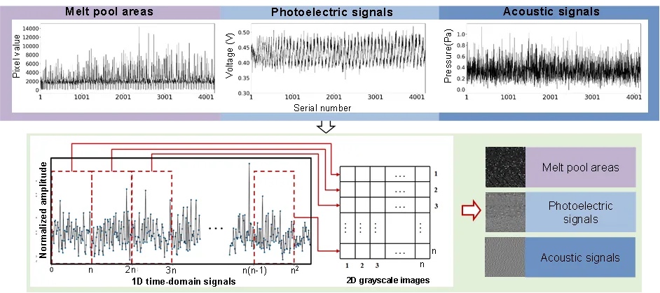 本研究提出了一种基于多传感融合的熔池监测系统对增材制造部件进行原位质量分类的方法。该方法集成高速相机、光电二极管和麦克风对L-PBF过程进行信号采集,并提出一种信号-图像的多源异构信号处理方法。通过将三种单传感监测模型分别进行分组融合,实验表明利用多传感融合方法对L-PBF过程进行监测可以进一步提升模型质量分类的准确率。
