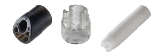 内窥镜端头:突破性实现20毫米深径比薄壁通道构建,在确保80微米超薄壁厚精度的同时,可形成多维交错的复杂内部管网系统。采用氧化铝、氧化锆及光敏树脂,具有良好的生物相容性。支持快速研发迭代,可替代传统机加工。