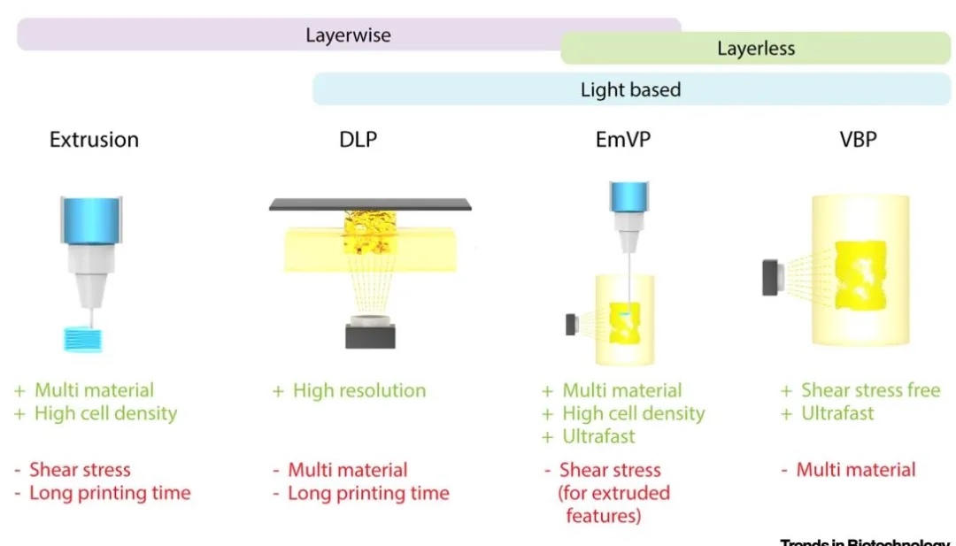 3D 生物打印在胰腺构建领域潜力无限,挤出式、喷墨式、激光辅助式等方法各有优劣。挤出式应用广泛却受速度和剪切力制约,DLP 打印则被速度拖后腿。VBP 技术异军突起,打印快速且应力小,还能与其他技术联用,可构建含血管和神经的复杂胰腺模型,推动研究迈向新高度。