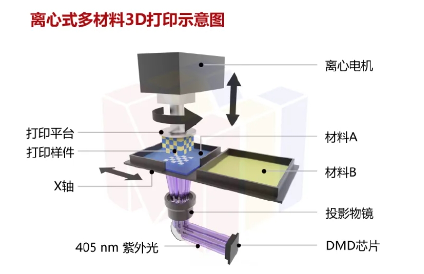 2024年10月,南方科技大学葛锜教授团队创立了一家专注于多材料光固化 3D 打印技术的公司——深圳质多三维,其自主研发了离心式多材料3D打印技术,并推出了MultiMatter系列多材料光固化3D打印设备。