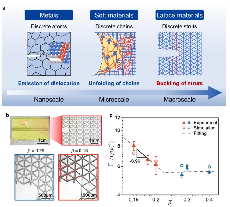 中国科学技术大学材料演化与断裂控制实验室:揭示轻质抗断裂点阵超材料的增韧新机制