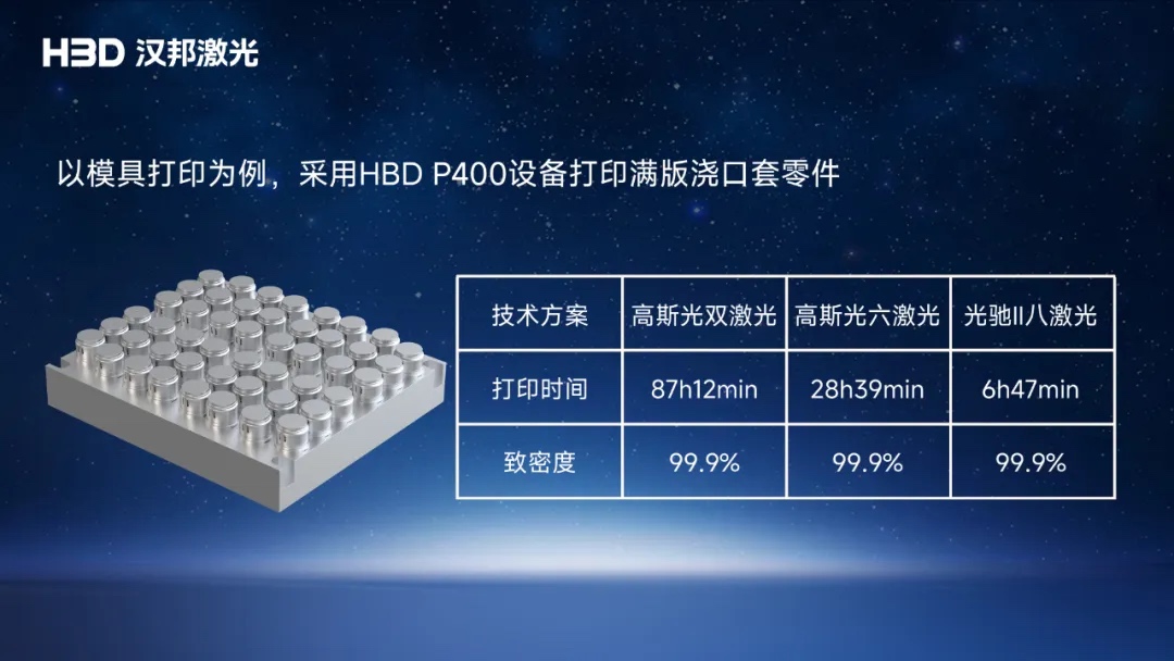 高效量产模式:点环光+大层厚(300μm)策略,满足汽车制造、工业模具批量化生产;