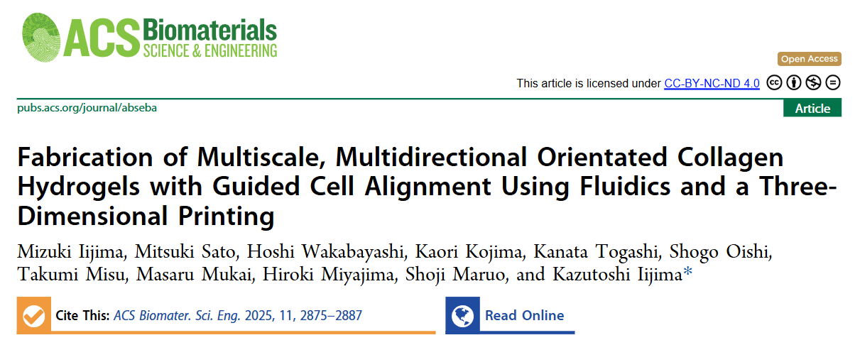 来源:Mizuki Iijima et al, Fabrication of Multiscale, Multidirectional Orientated Collagen Hydrogels with Guided Cell Alignment Using Fluidics and a Three-Dimensional Printing, ACS Biomaterials Science & Engineering (2025).
