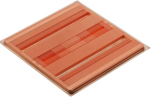 通过ECAM技术,Fabric8Labs能够在冷板内部构建分辨率达33微米的精细铜制翅片结构,引导冷却剂精准流向芯片的关键发热部位。相比传统微通道冷却方案,这种定制化设计使整体热性能提升了48% ,显著改善了芯片的温度均匀性。
