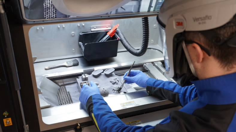 △使用 Croom Medical 的 TALOS™ 增材制造平台制造的钽组件在打印后被小心地卸载。