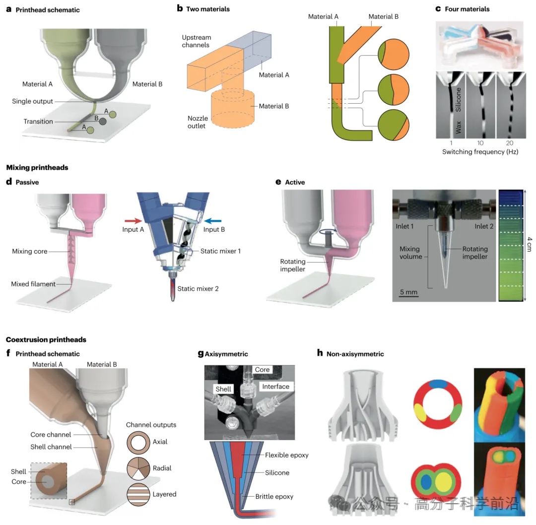 1.形状调制喷头:包括固定、自适应和多输出喷头,能够动态调整喷嘴尺寸和形状,优化打印分辨率和速度。例如,自适应喷头通过改变出口直径,实现了从微米级到厘米级结构的无缝打印。
