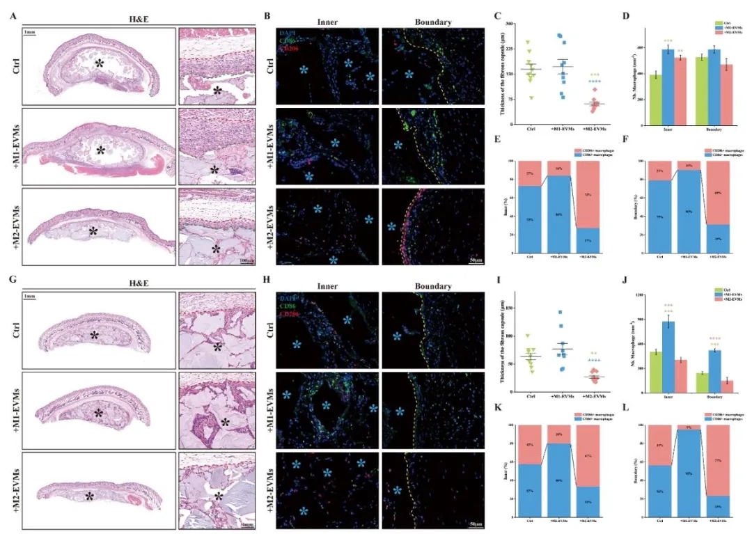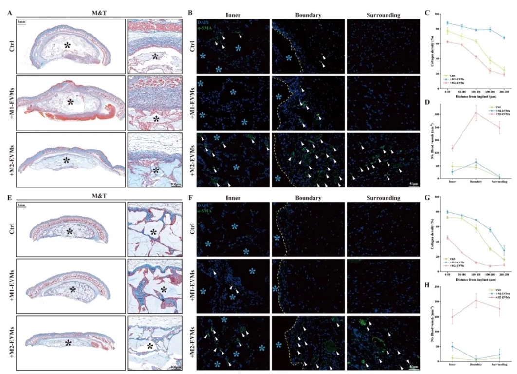相关工作以“Bioprinted M2 macrophage-derived extracellular vesicle mimics attenuate foreign body reaction and enhance vascularized tissue regeneration”为题发表在《Biofabrication》上。