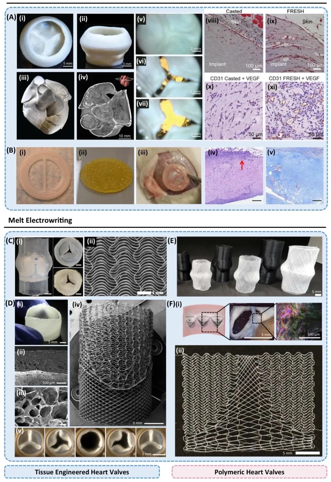 图4. 基于生物绘图(Bioplotting)和熔融电写(MEW)的3D打印心脏瓣膜