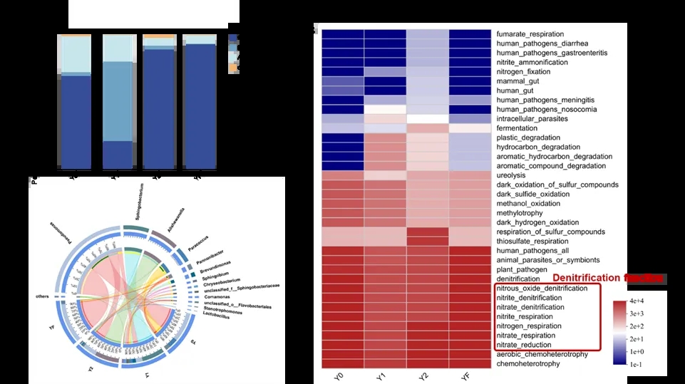 得益于良好的传质效应与生物墨水的亲和性,3D好氧反硝化活体材料内部碳氮代谢优势菌群实现了定向富集,主要反硝化功能菌相对丰度提升60%。相较游离菌群的单一群落,活体材料内实现了稳定生态位分化,通过多菌协同作用降低代谢负担并强化环境胁迫抗性。该特性确保了复杂水环境中反硝化菌群的高活性维持,这能够为生物脱氮技术的可持续发展提供关键保障。