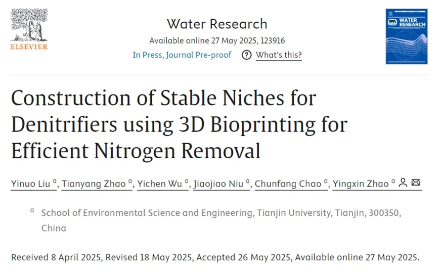 天津大学赵迎新教授团队:利用3D生物打印技术构建反硝化菌稳定生态位以实现高效脱氮