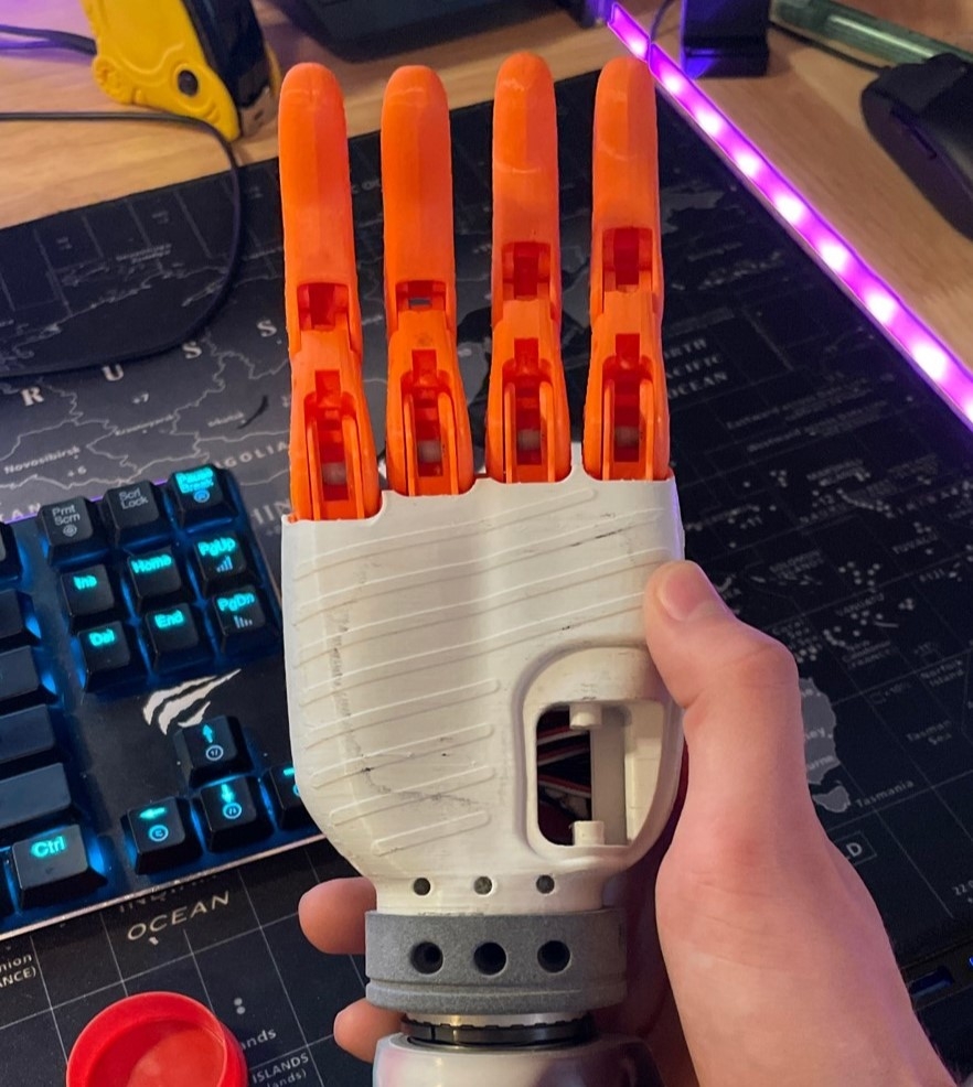 2018年,他用纱线、纸板、柔性电阻器、伺服电机和 Arduino开发板开始制作自己的第一根假肢手指——这将成为Saavedra推动假肢手行业创新的开始。