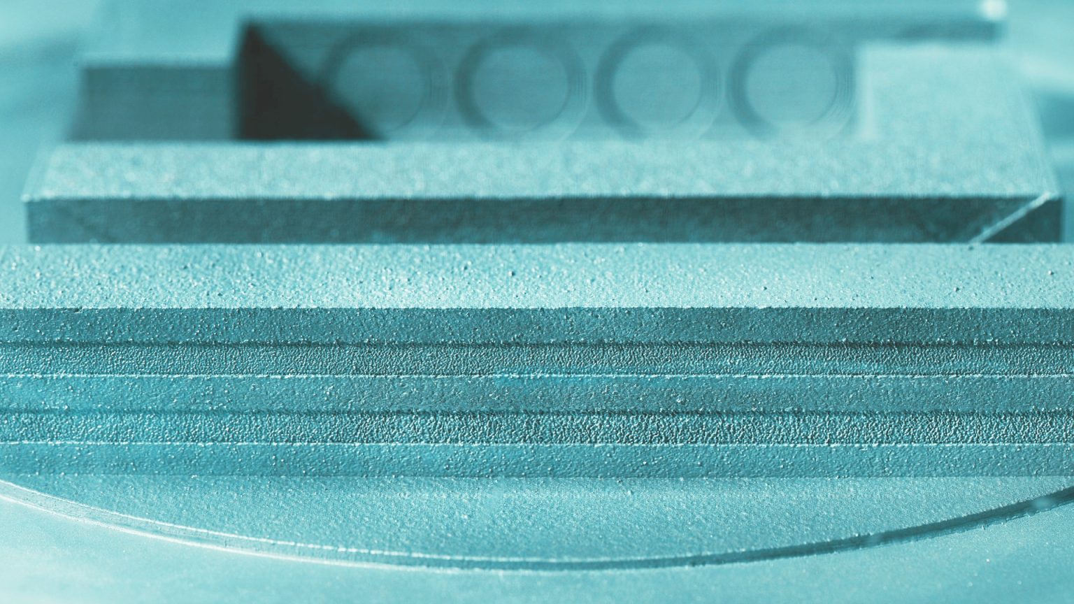 △增材制造部件中多孔区域的特写,展示了致密区域和透水区域之间渗透性的精准控制。图片来自弗劳恩霍夫ILT研究所。