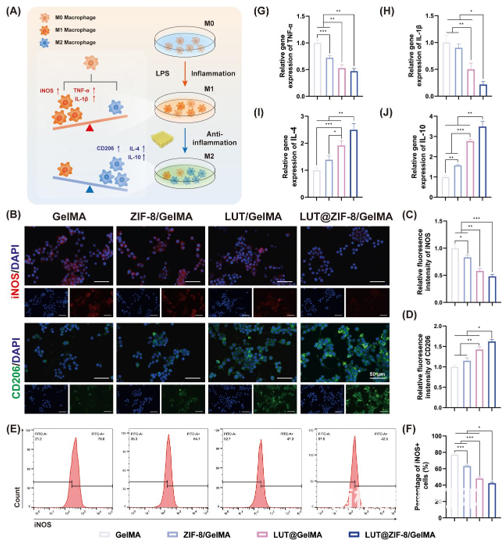 图7. 水凝胶支架对巨噬细胞极化的调节。