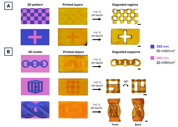 通过调整不同波长光的照射区域,科研人员可以在同一层中同时打印出可降解支撑结构和永久功能部件。这种方法无需更换树脂、无须物理切换喷头或平台,极大提升了打印效率与几何自由度。