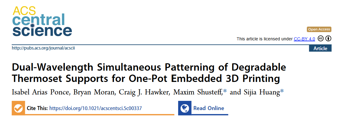 2025年6月23日,近日发表在《ACS Central Science》期刊上的一项题为“Dual-Wavelength Simultaneous Patterning of Degradable ThermosetSupports for One-Pot Embedded 3D Printing”的研究引起了业界的关注:研究人员开发出一种基于“双波长同步成像”的大桶光聚合(Vat Photopolymerization,VP)技术,首次实现在“单一树脂”体系内打印出永久性结构与可降解支撑双材料物体。