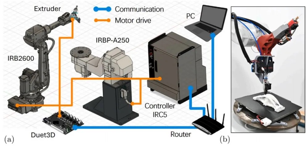 整套方法通过8自由度机器人打印系统实现物理验证,其中双打印头设计支持PLA基质与连续碳纤维的协同挤出,路径规划结果直接转换为机器人运动指令,最终在力学测试中展现出84.6%的失效载荷提升。该方法的核心突破在于将数学场论(2-RoSy表示)、计算几何(周期性参数化)与制造工艺(多轴运动控制)深度融合,为高性能复合材料的数字化制造提供了新范式。
