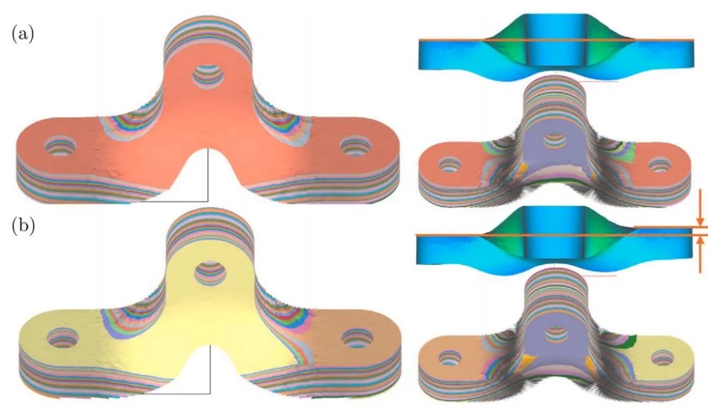 针对应力集中区域(如孔洞),研究人员扩展S³-Slicer框架,通过添加孔洞方向约束和高度一致性控制,确保纤维绕孔连续分布。此外,引入边界跟随项优化方向场,避免路径断裂。实验表明,该方法显著提高了孔周纤维覆盖率和结构强度。