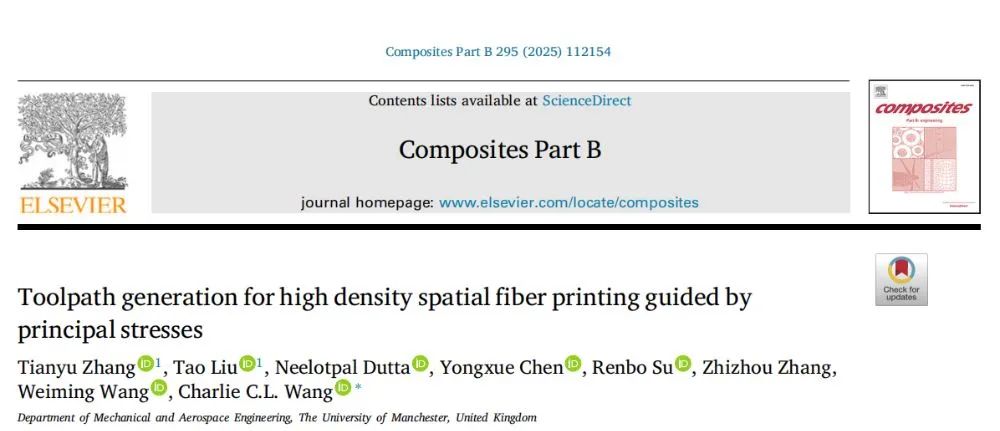 Zhang T, Liu T, Dutta N, et al. Toolpath generation for high density spatial fiber printing guided by principal stresses. Composites Part B. 2025;295:112154.