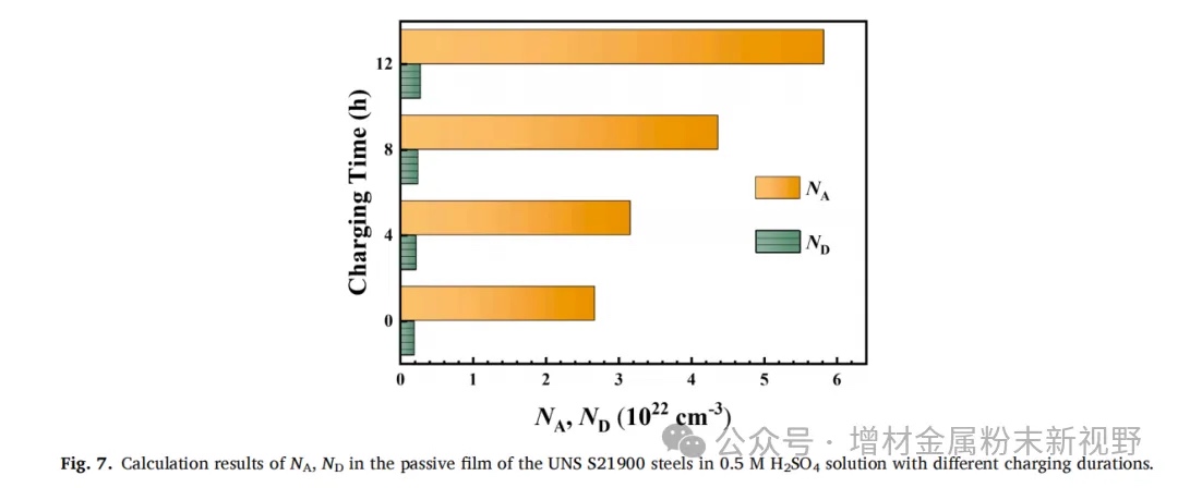 • 被动区内电流密度从2.95×10⁻⁶ A/cm²(无氢)上升至2.01×10⁻⁵ A/cm²(12h充氢);