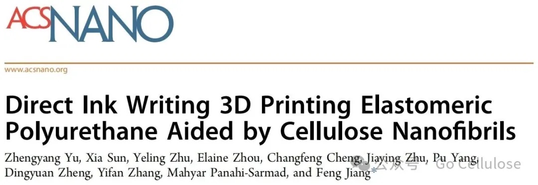 直接墨水书写3D打印纤维素纳米原纤维辅助的弹性聚氨酯