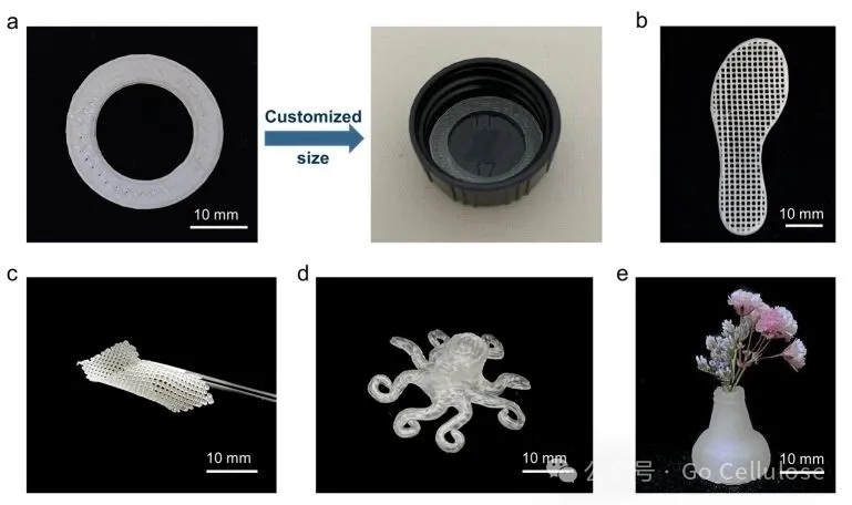 该研究通过在WPU中加入CNF,成功实现了DIW 3D打印弹性体聚氨酯,并引入SIFS方法,显著提升了打印件的机械性能和弹性,使其具备出色的耐久性和复杂结构打印能力。