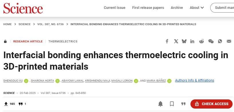 原文链接:Interfacial bonding enhances thermoelectric cooling in 3D-printed materials | Science