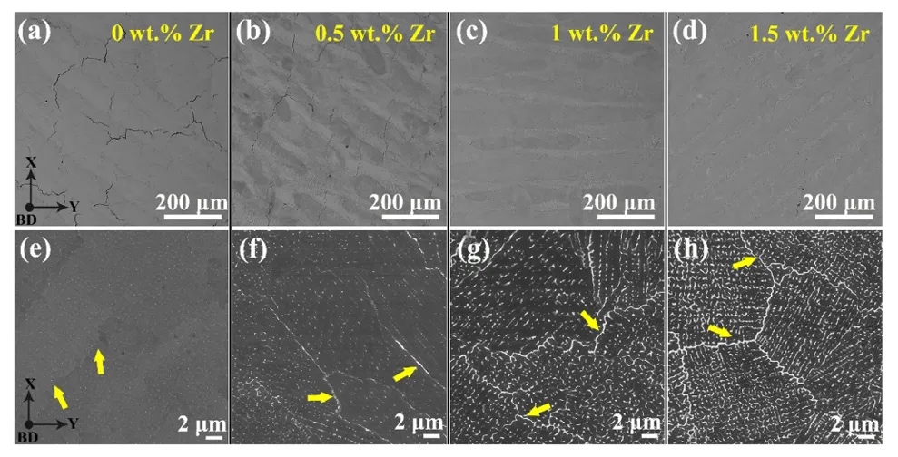 原始和Zr改性Haynes 230样品的打印微观结构。