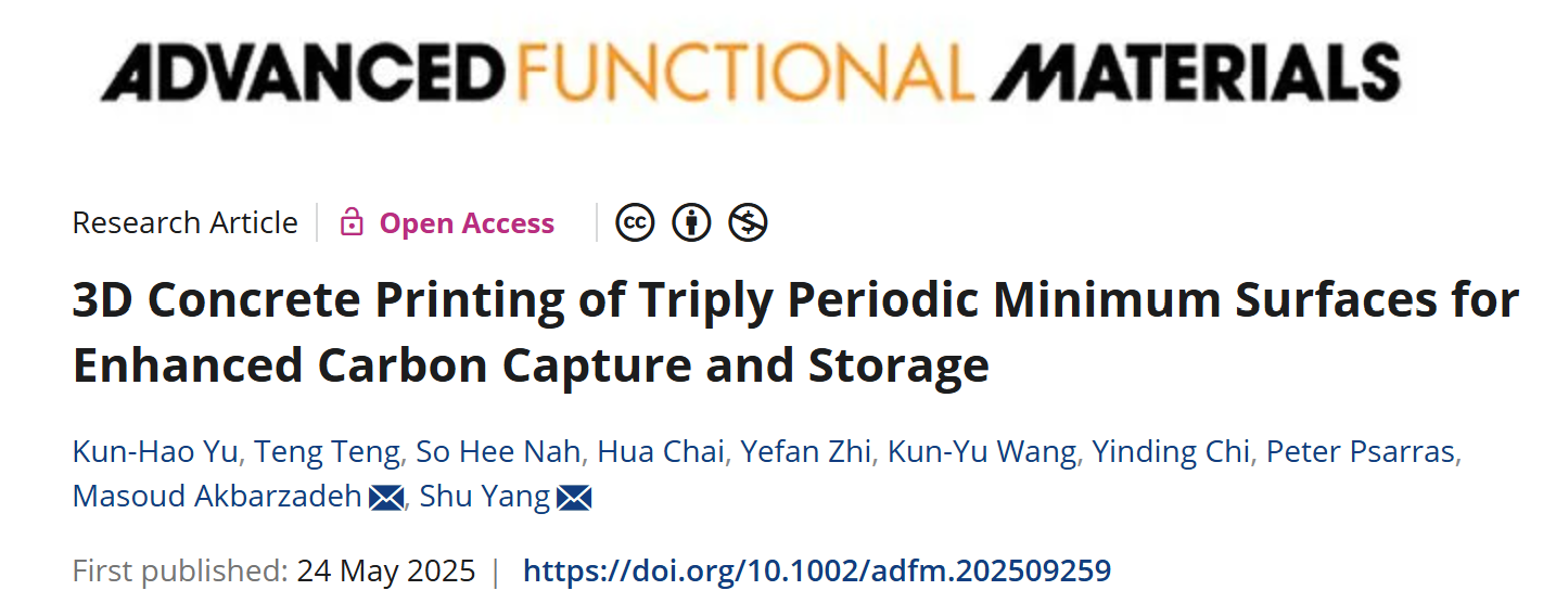 相关研究以题为“3D Concrete Printing of TriplyPeriodic Minimum Surfaces for Enhanced Carbon Capture and Storage”的论文发表在《Advanced Functional Materials》期刊上。
