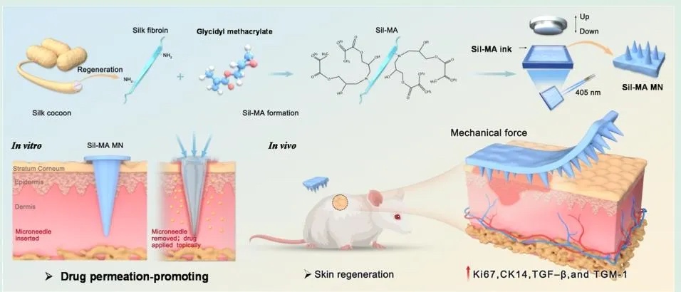光固化3D打印丝素蛋白微针用于增强透皮递送和皮肤再生的精密工程