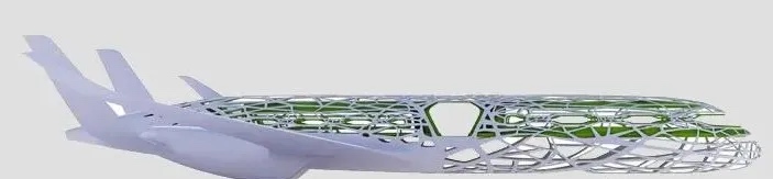增材制造技术在航空航天点阵结构产品设计与制造领域已展现出一定的发展与应用潜力,并以轻量化和高性能作为主要考核目标。而且,激光增材制造点阵构件已在国际民航客机制造领域获得了实际工程应用。空客公司基于SLM技术设计和制造的仿生点阵结构机舱隔板,在成形材料上选用新型轻质高强铝合金,该在结构设计上基于生物启迪实现了跨尺度仿生点阵结构设计,在宏观尺度上基于“黏菌自适应网络”算法实现了主体结构设计,在微观尺度上则借鉴了骨骼生长的生物灵感,完成了超过66000个网格的排布,实现了微观网格稠密度与应力分布相匹配,最终使得跨尺度仿生点阵构件较原蜂窝复合材料隔板结构在相同冲力下的位移减少了8%(9mm),有望批量应用于A320客机上。