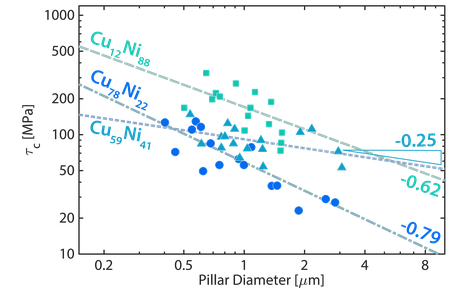 因此,新论文表明,HIAM 制备的合金强度不仅取决于金属内部晶粒的大小(正如之前所认为的那样),还取决于成分。例如,Cu12Ni88 合金中每 88 个镍原子对应 12 个铜原子,强度几乎是Cu59Ni41 合金(铜和镍的比例为 59/41)的四倍。